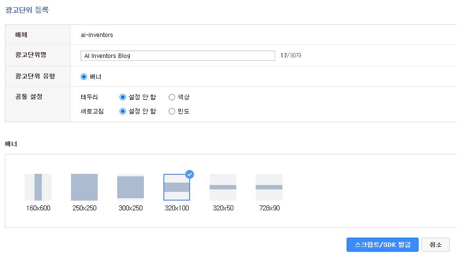 매체는 내가 등록하고자 하는 사이트 라면, 그 사이트 내에 게재할 광고 하나하나를 "광고단위"라고 합니다.