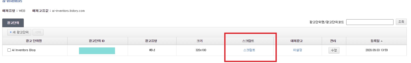 광고단위까지 등록하고 다시 광고관리로 돌아오시면,