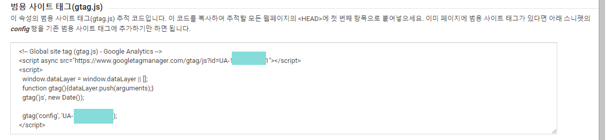 애널리틱스 용 script 코드를 붙여넣을텐데요