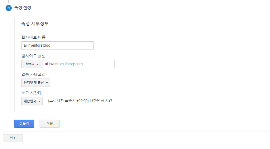 속성정보를 입력하시고 최종적으로 "만들기" 버튼을 눌러주시면,