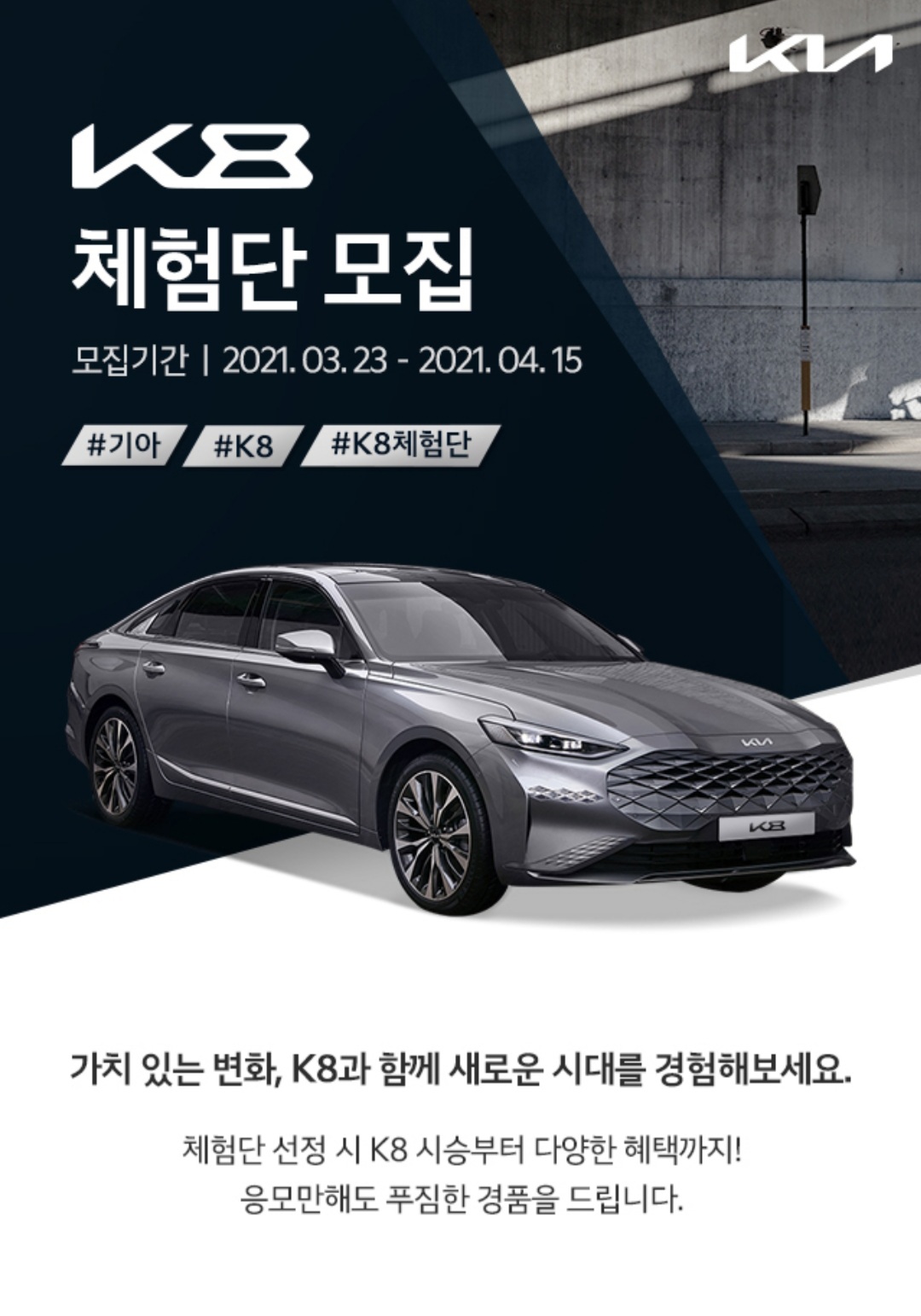 마침 k8 사전 시승 체험단 모집을 한다네요??