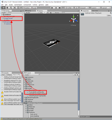 Video 라이브러리를 끌어다가 Hierarchy의 ImageTarget 위에 올려놔주세요