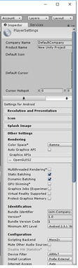 Player Settings를 누르면 우측 Inspector 창에 다음 화면이 뜰거에요