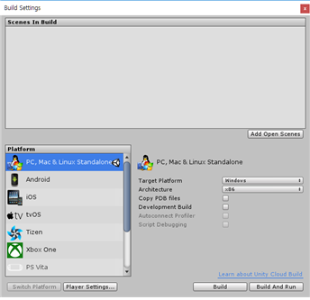 Add Open Scenes를 눌러 저장하고자 하는 프로젝트 파일 명을 지정해주시구요