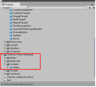 Vuforia Video Playback – Prefabs를 눌러주시면 Video 라이브러리가 보이실거에요