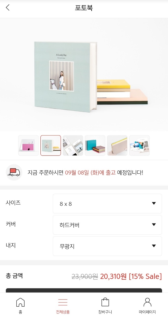 1. 일단 제작할 포토북의 사이즈와, 커버 종류, 속지 재질 을 선택해줍니다.